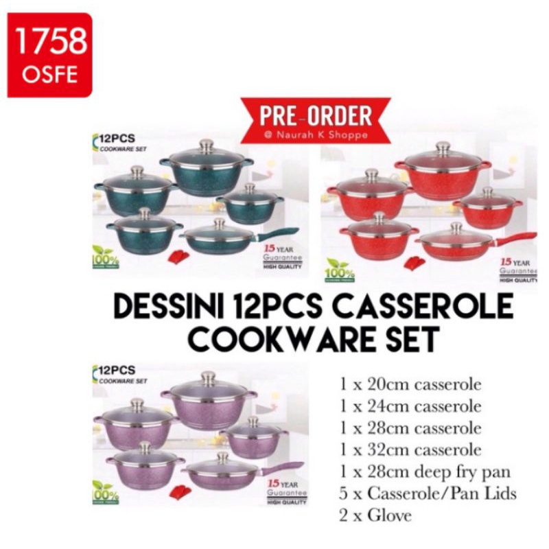 ORIGINAL DESSINI ITALY 23 Pcs Casserole Die Cast Aluminium Non Stick Pot Bowl Double Side Pan Cookware Cover PERIUK. 12 PCS DESSINI ITALY Non Stick Cookware Set Cooking Pot Frying Pan ORIGINAL READY STOCK Product Details. Dessini ORIGINAL ITALY 10 Pcs Aluminium Non Stick Induction Copper Casserole Pot Bowl Deep Fry Pan Cookware Tool PERIUK RM 16950 RM.